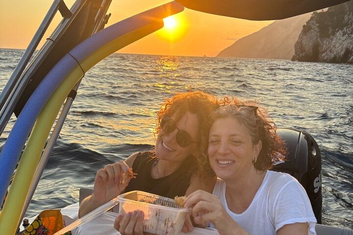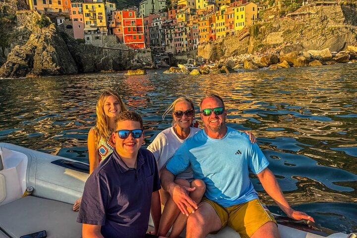 Experience an unforgettable sunset by boat in the stunning setting of the Cinque Terre! with Aperol Spritz , Focaccia, pizza , music and a swim, fun is guaranteed!